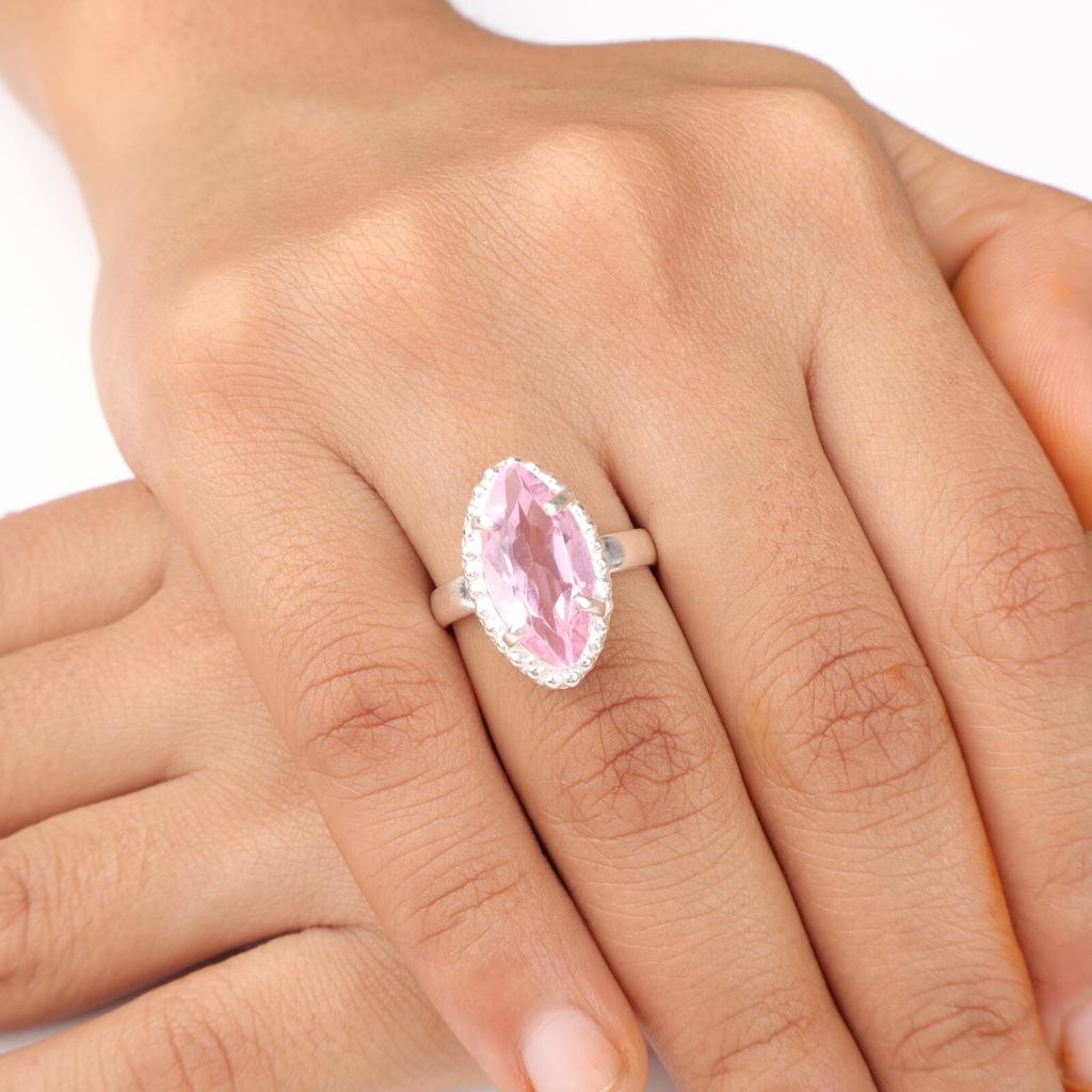 Gema Morganita Rosa Plata de Ley 925 Joyería Anillo Regalo Para Novia