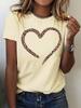 Leopard Heart Print Women's Short Sleeve Crew Neck T-Shirt Design Casual Trendy Graphic Tee Y2k Top Women Clothes