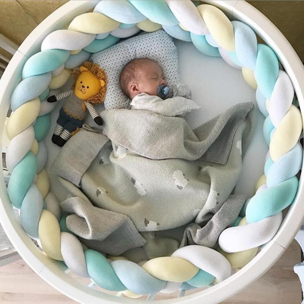 Cojín Nudo Trenzado Danés de Cuatro Hebras – Protector de Cuna Anticolisión para Habitación Infantil
