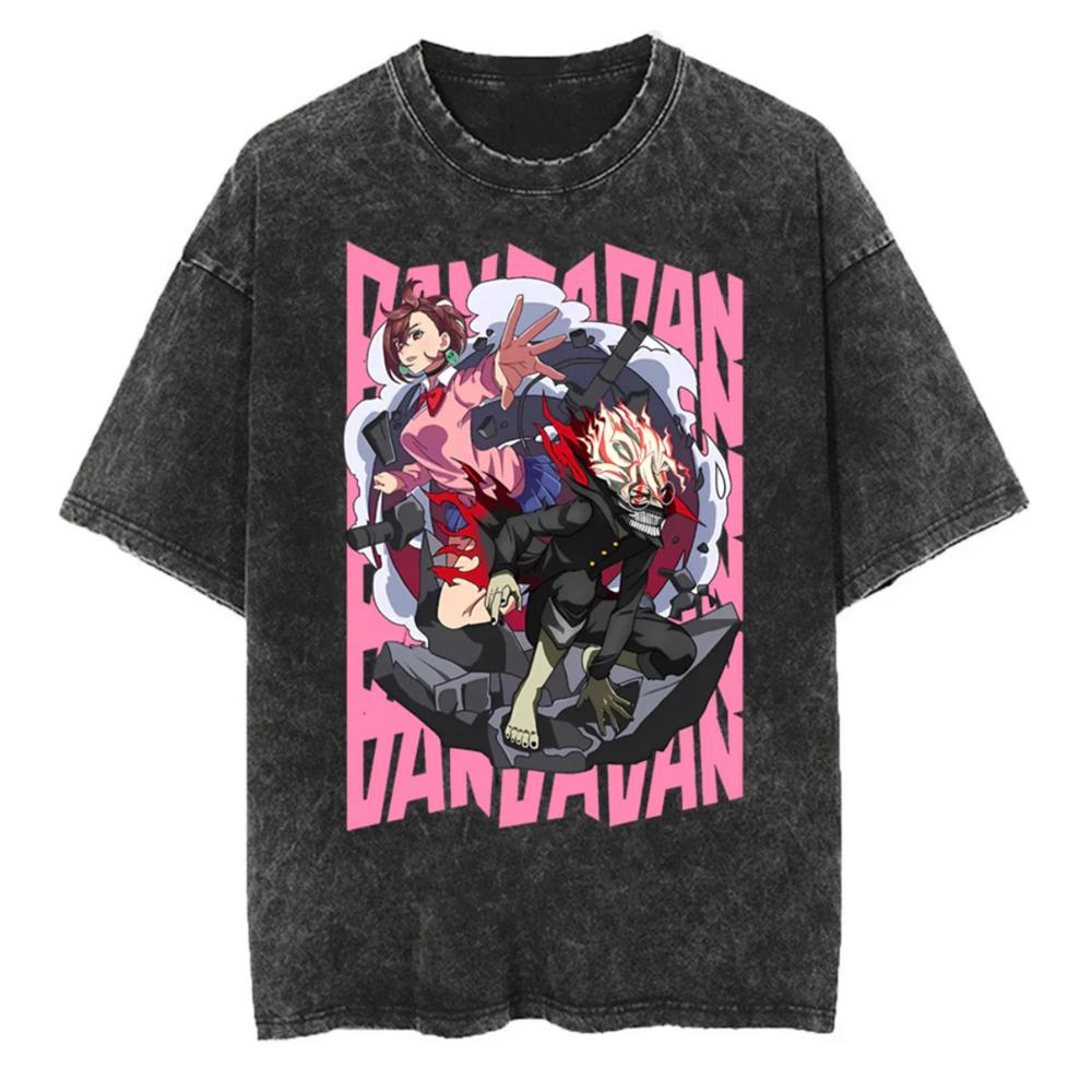 Anime Dandadan Ayase Momo Okarun Camiseta Estampada Hombre Camisetas de Algodón Lavado Camiseta Casual Oversize Harajuku Hombre Tops de Manga