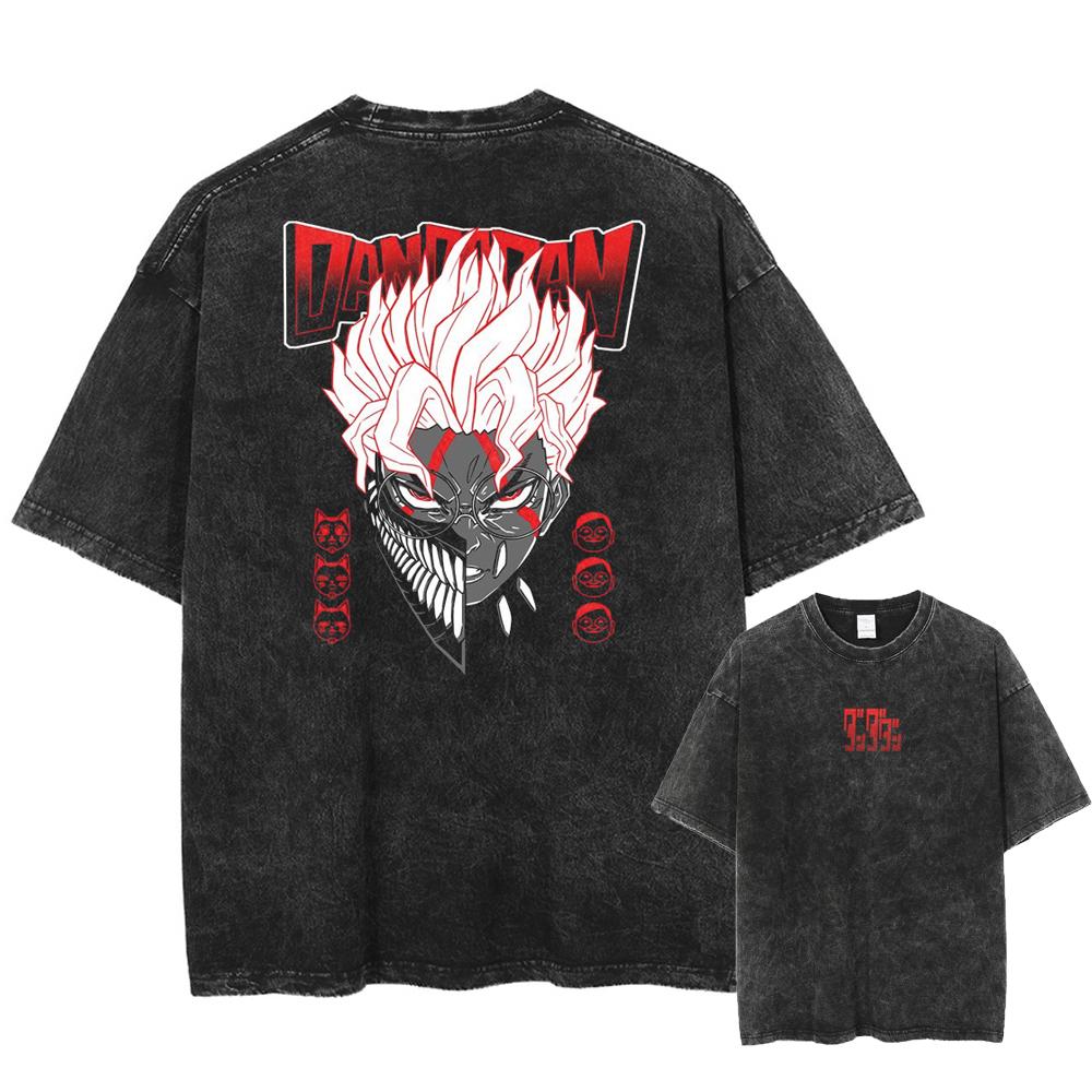 Anime Dandadan Okarun Ken Takakura Print Washed Tshirt Men Manga Vintage T-shirts Oversized Cotton T Shirt Harajuku Male Tops