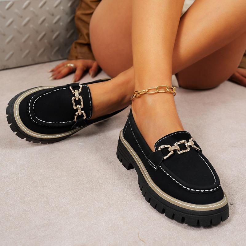 Large size single shoes women's autumn new metal chain flat bottom thick bottom casual