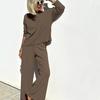 Conjunto de sudadera de manga larga de dos piezas con pantalones largos y pierna ancha y manga larga informal para mujer