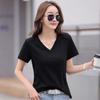 Korean Style V-Neck Cotton Short Sleeve Women's T-Shirt, Solid Color, Loose Fit, Plus Size, Spring/Summer Collection