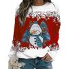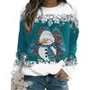 New Christmas 3D snowman print women's loose round neck long sleeved T-shirt