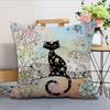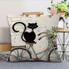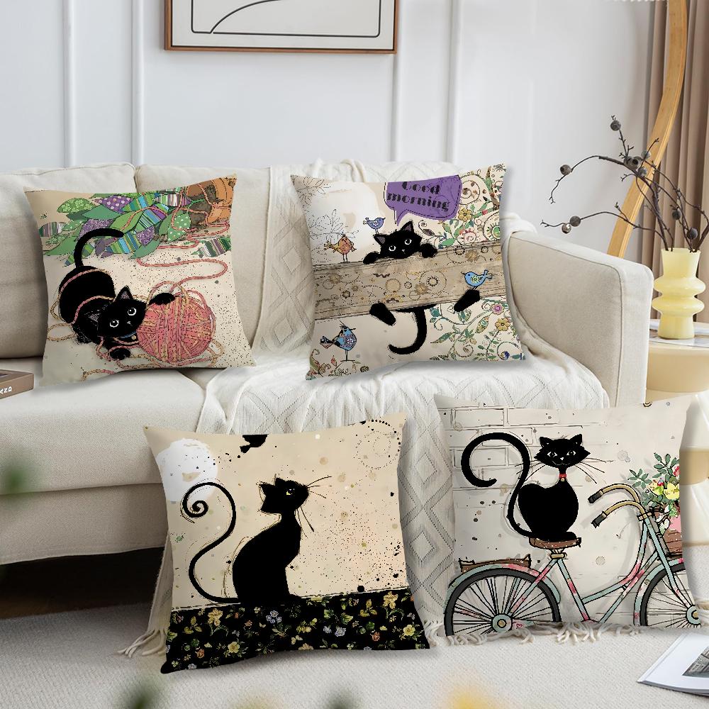 Funda de Almohada vintage francesa suave Cómoda gato negro caricatura para Sofá Sala de estar gato Habitación Hogar oficina Decoración Retro Cubierta Protectora