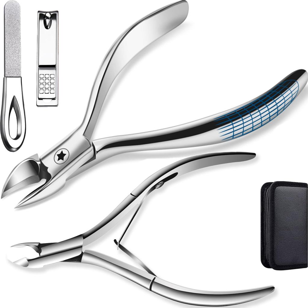 Justit Nail Care Set with Nippers for Ingrown Nails and Multifunctional Stainless and Includes a Leather Storage Bag 4-Piece Toenails, Steel,