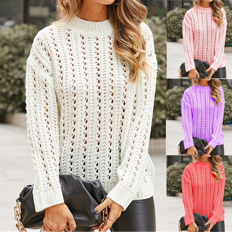 Jersey Calado de Punto Casual para Mujer Estilo Urbano Moda Mangas Largas Lujoso Ajuste Relajado Adelgazante y Versátil Top
