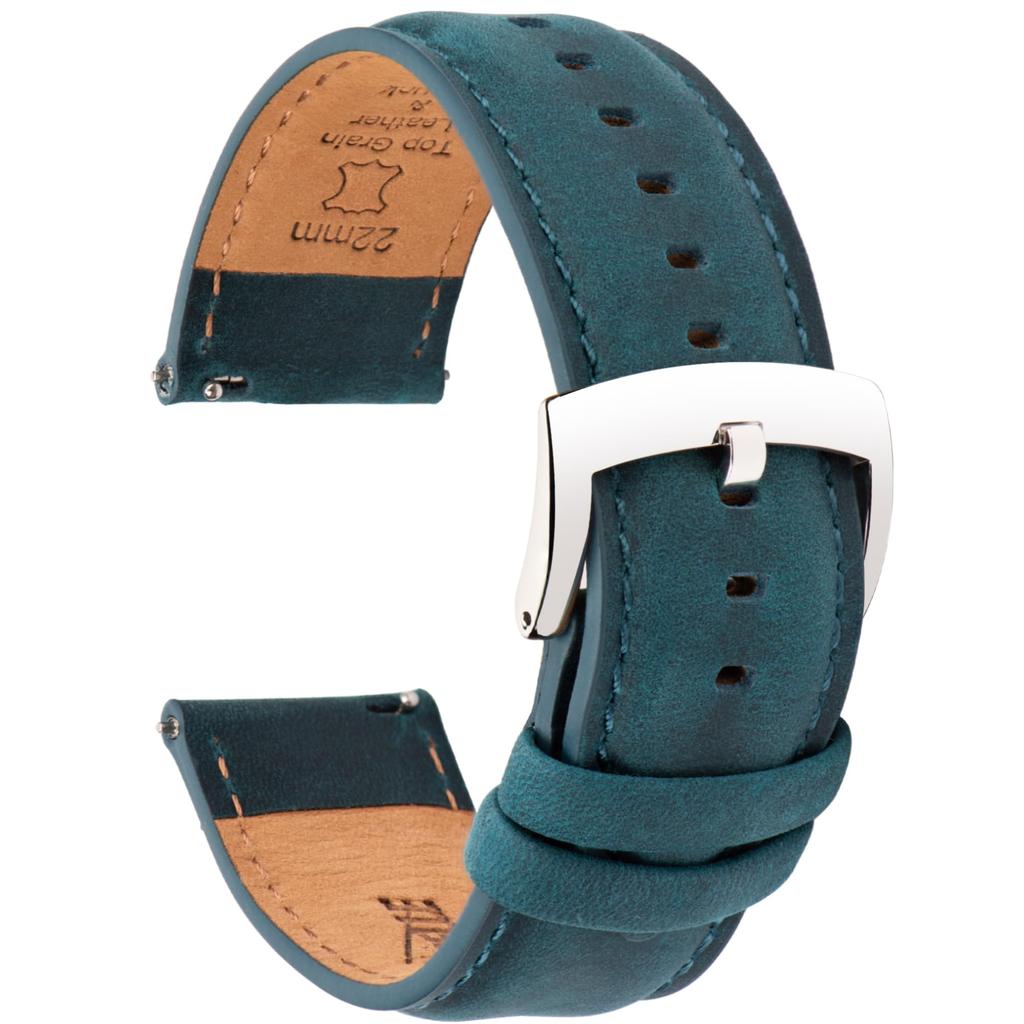 Estilo Vintage, Cuero Crazy Horse y Nubuck Oscuro: Cuero Crazy Horse premium cuidadosamente seleccionado que se agrieta naturalmente al flexionarse el cuero. Con el tiempo, desarrolla una pátina natural; estas simples imperfecciones añaden una rica textura a cualquier reloj. El reverso presenta un forro de nobuk marrón oscuro que es increíblemente suave al tacto, proporcionando una comodidad ideal con un mínimo deslizamiento.. Esta combinación crea un estilo retro elegante y clásico que es cómodo en la muñeca.
