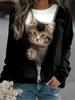 Fashion 3D cat print women's casual round neck long sleeved T-shirt