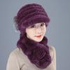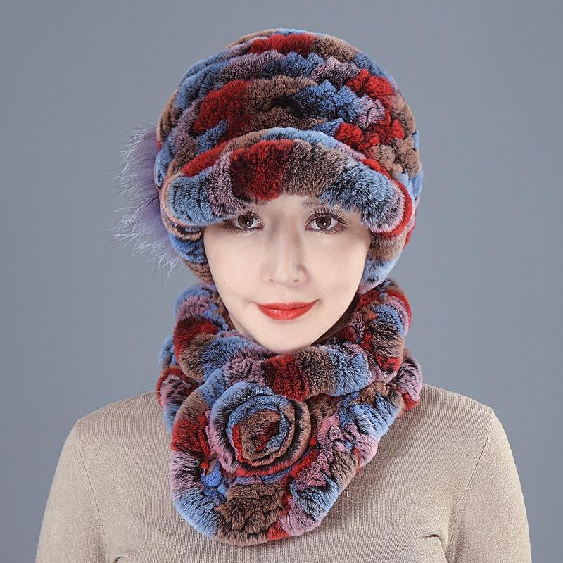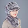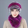 New Rex rabbit hair hat women's autumn and winter ear protection fur woven real hair medium and old thickened versatile scarf set