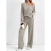 Conjunto de Ropa para el Hogar Casual de Moda para Mujer Otoño e Invierno con Rayas de Piqué y Arenado, Conjunto para Mujer Otoño e Invierno