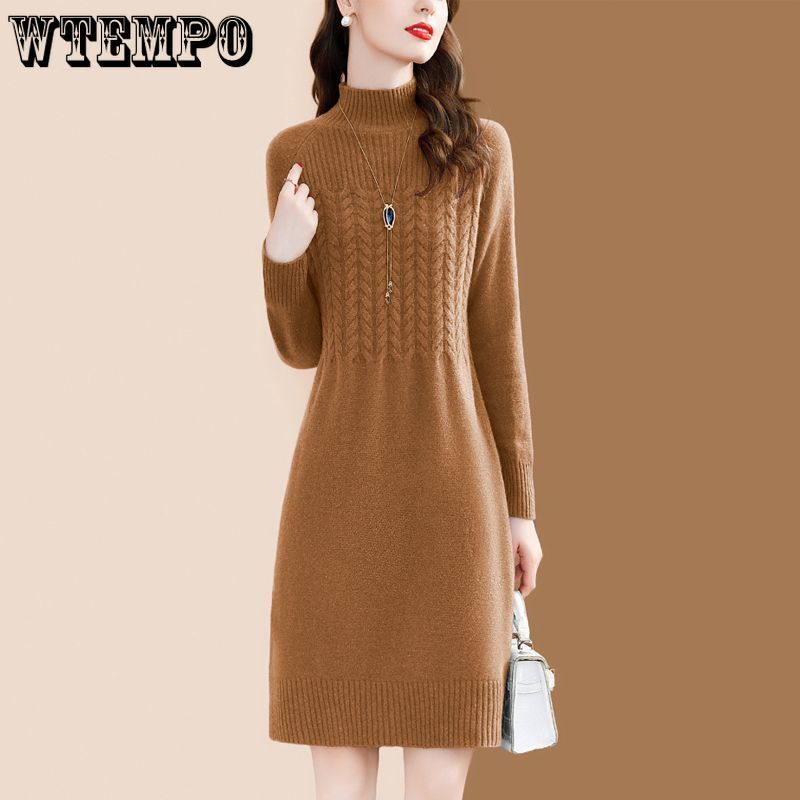 Fashionable Sweater Dress for Women Versatile Semi-high-neck Knitted Base Dress Casual Pullover