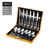 Caja de Madera Dorada Juego de Cubiertos de Acero Inoxidable - Cuchillo para Carne, Tenedor, Cuchara para Cena Occidental