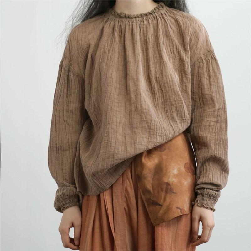 Johnature Women Vintage T-Shirts Solid Color Spring Long Sleeve O-neck Chinese Style Female Loose T-Shirts