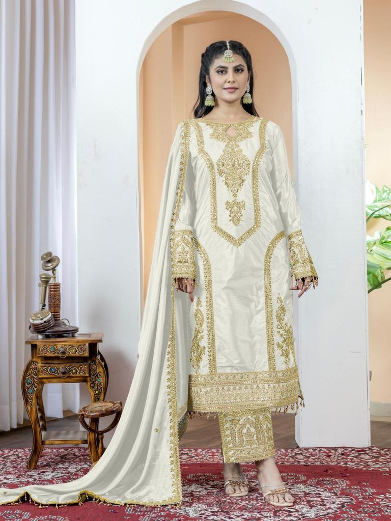 Women Designer Party Wear Salwar Kameez Indian Bollywood Heavy Chinon Silk Salwar Suit Dress