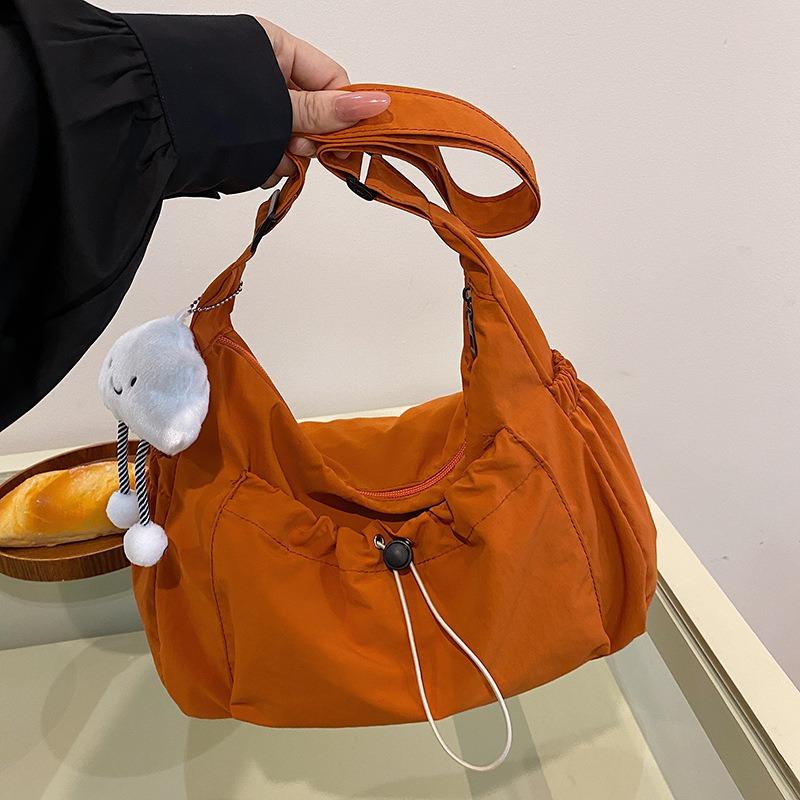 Fashion drawstring messenger bag women's new versatile pleated shoulder bag large-capacity student sports and leisure bag