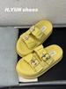 Leather thick-soled one-word slippers women's 2025 summer new pleated versatile comfortable soft-soled beach shoes cool slippers