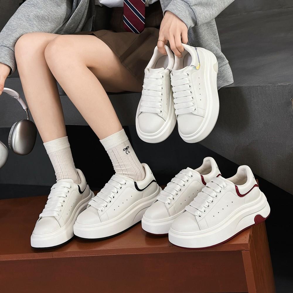 Leather retro little white shoes women's 2025 spring new love McQueen versatile thick-soled heightening casual sports board shoes