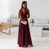 Vestidos casuales de cintura alta con cuello en V sin mangas con estampado de color sólido a la moda para mujer