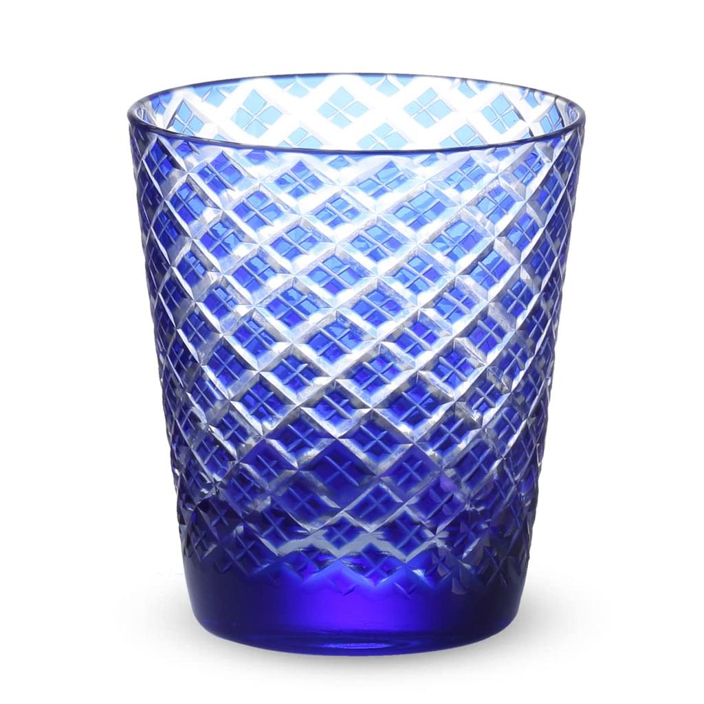 Retro Kiriko Glass Diamond Current Model J-kitchens Cup, 79xH90mm, 220cc, Pattern, Blue, Kasho,