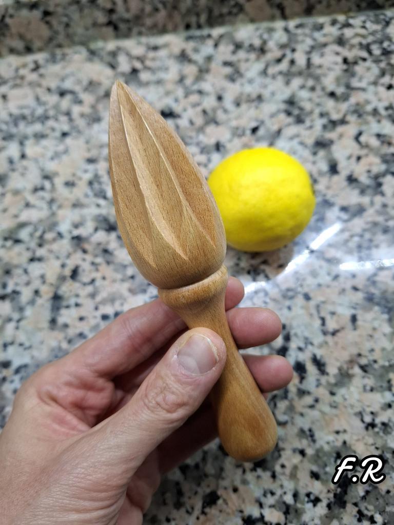 Es un exprimidor manual de naranjas y limones, el cual no nos puede faltar en nuestrascocinas, es muy fácil de usar por lo que lo pueden utilizar tanto niños como mayores. 👍👍😉👍👍 Lo recomiendo 👌. 📦 Contenido del paquete: Un exprimidor manual de madera. 👍Pros: Enviado a España en 25 días.✈️ Bien protegido para el viaje. Calidad excelente. Tiene un diseño muy atractivo. Un exprimidor tallado en madera muy fácil de usar. Exprime naranjas y limones sin problemas. Lo pueden utilizar tanto niños como mayores. No puede faltar en nuestras cocinas. 👎Contras: Nada que destacar. .