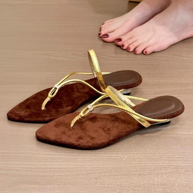 Fashion 2025 New Summer Women's Cross-Strap Open Toe Flip Flop Sandals Pointed Thong Beach Slippers Casual Sole Shoes Fashion Sandals