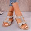 Fashion Shining Crystal Wedge Sandals for Women Summer 2025 Elastic Band Non Slip Beach Sandalias Mujer Fashion Pearl Decor Party Shoes