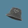 Sun hat washed denim fisherman hat children's love embroidery spring and autumn versatile face cover casual short brim basin hat
