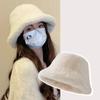 Rabbit fur bucket hat women's autumn and winter plush hat big head circumference showing small face warm hairy hat bucket hat