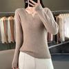 Autumn and winter new long-sleeved solid-color slim-fit bottoming shirt round V-neck sweater women's knitted sweater jumper top
