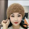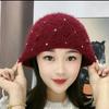 Otoño e Invierno Nuevo Gorro Grueso Tejido a Mano Perla Doble Capa Cálido Gorro de Punto a Prueba de Frío y Cálido Gorro Baotou para Mujer
