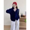 Autumn and winter niche V-neck twist loose knitted cardigan top casual simple long-sleeved thin outer sweater
