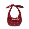 Chic PU Shoulder/Handbag with Eyelet & Bow Detail: Crafted from PU with a glossy finish, adorned with eyelet decorations and a cute bow - tied handle. Designed for single - shoulder or hand - carry wear. Ideal for adding a touch of trendy charm to daily outings, dates, or casual events.