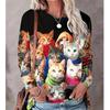 Impresión 3D, mujer, camisetas, moda, tops, manga larga, cuello redondo, otoño, diario, moda, pulóver,