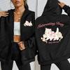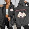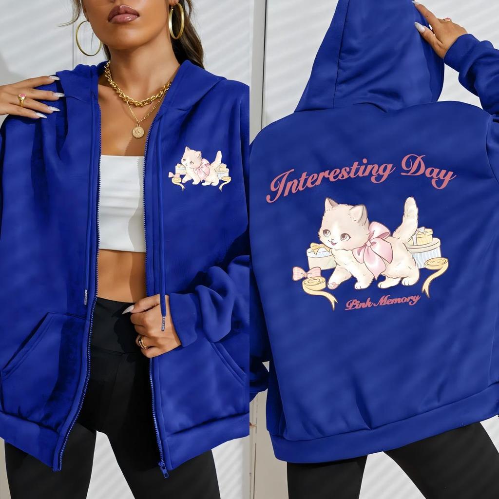Elegant Little Cat Interesting Day Print Zipper Hoodies Woman Fashion Comfortable Hoodie Fleece Clothes Street Top