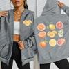 Lemon Orange Cocktail Printing Women Zipper Hoodie Fashion Loose Hoodies Fleece Sportswears Autumn Clothing
