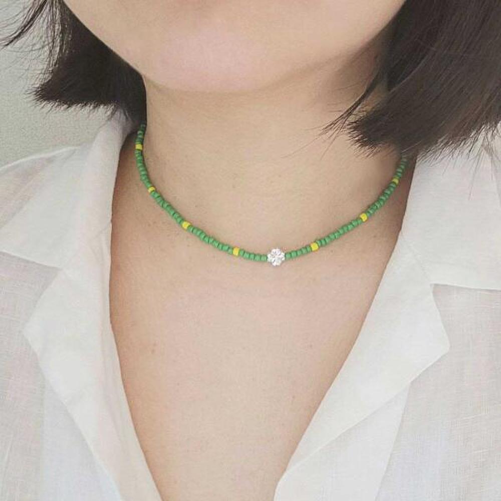 Poom/Spring Night Moon Green Four-Leaf Clover Bead Necklace