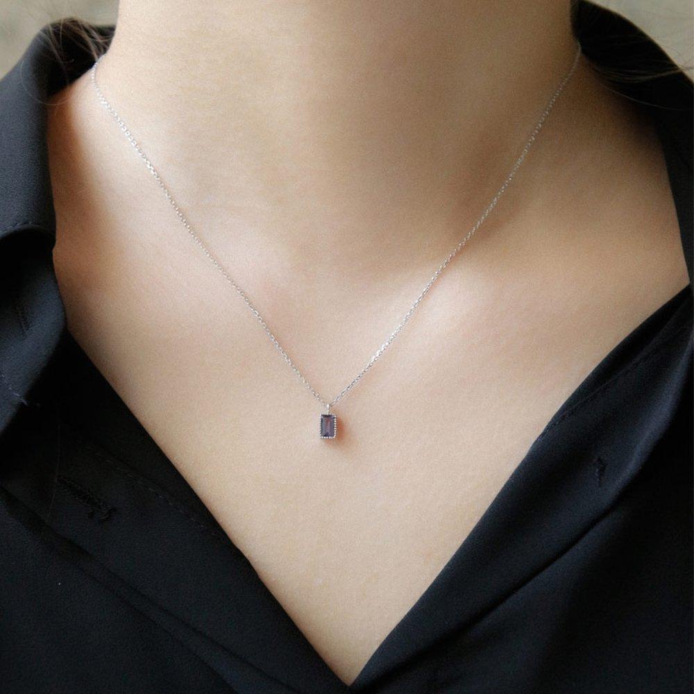 J.Lauren Iolite Birthstone Rectangular Silver Gemstone Necklace N01107