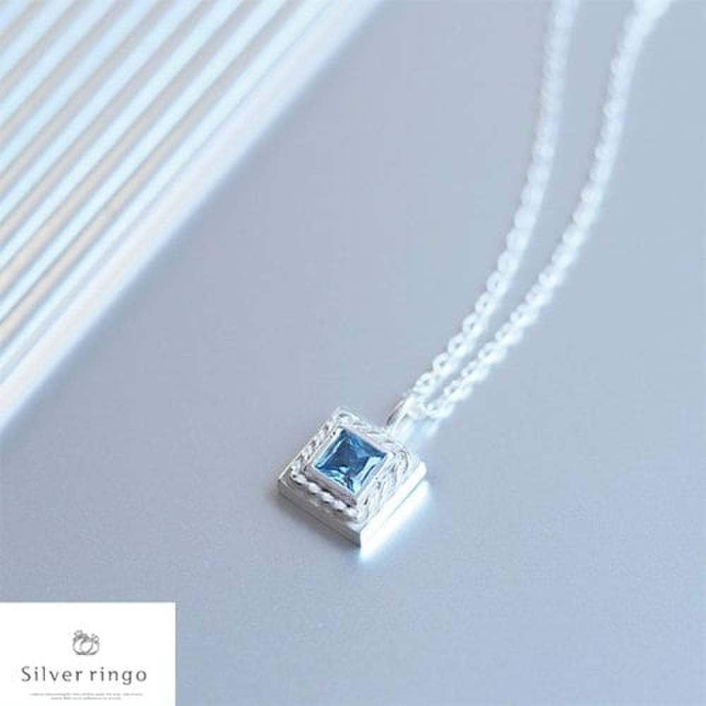 Silver 925 March birthstone square necklace Aqua Square Twist n