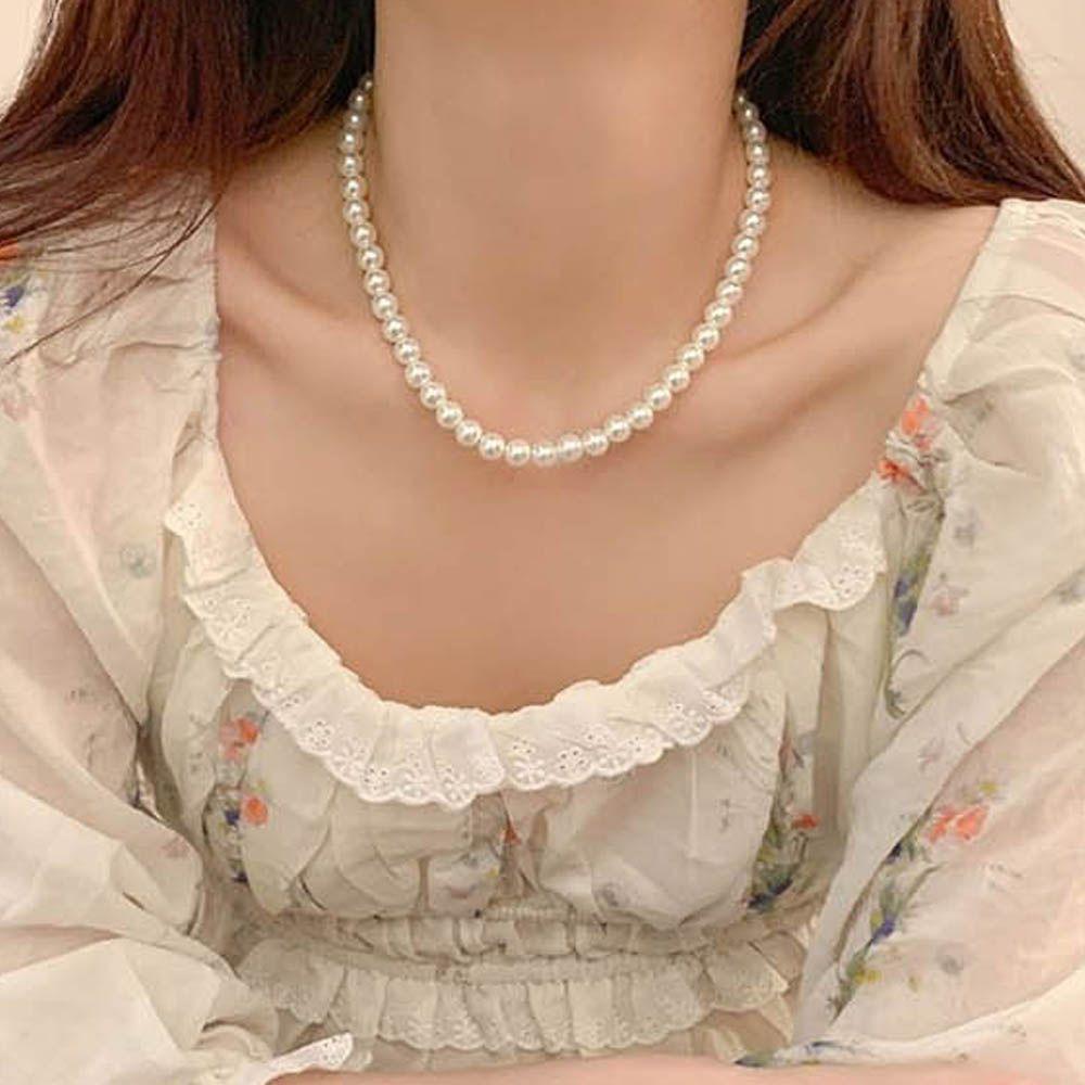 Fashion pearl necklace, casual layered daily, high-quality finish, 7mm