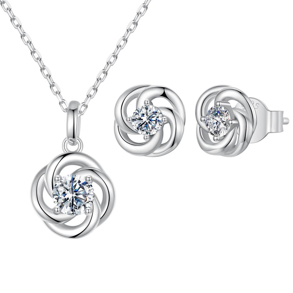 Classic Four-Leaf Clover D-Color Moissanite Stud Earrings Necklace Set S925 Sterling Silver, Light Luxury And Elegant Style