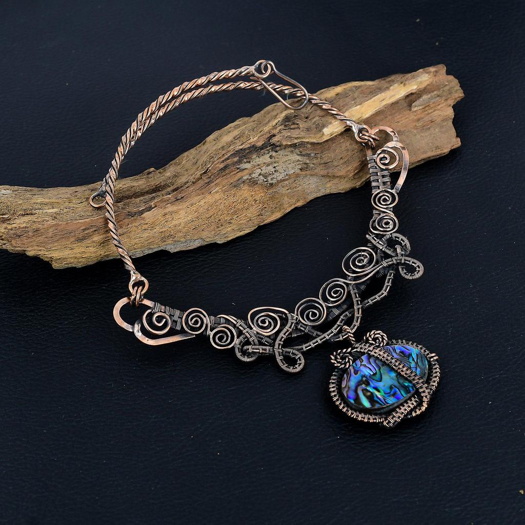 Abalone Shell Necklace 999 Copper Wire Wrapped Adjustable Chain Necklace Gift For Women, Handmade Gemstone Jewelry Necklace