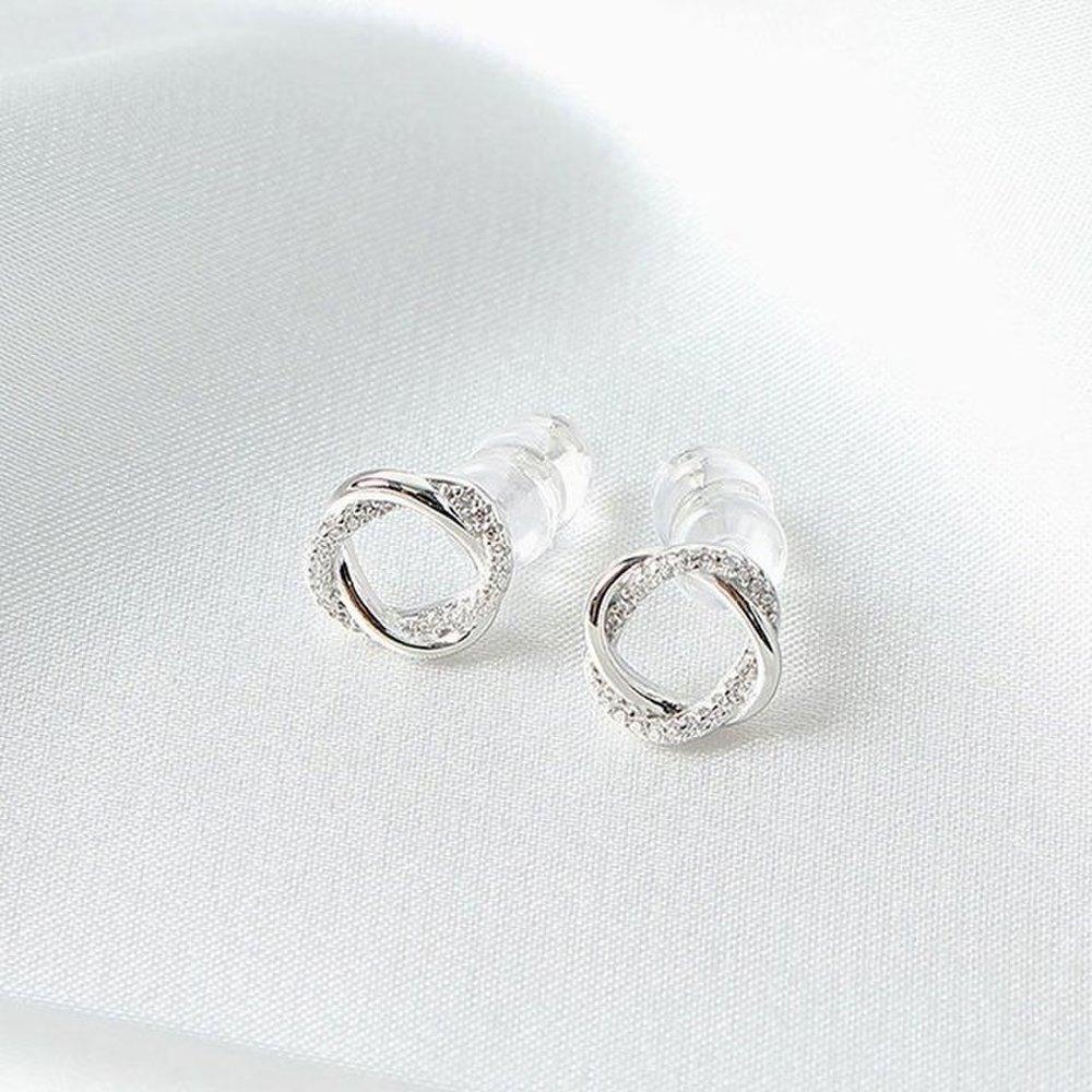 Silver 925 Twisted Modern Cubic Platinum Earrings (We6Bb5E)
