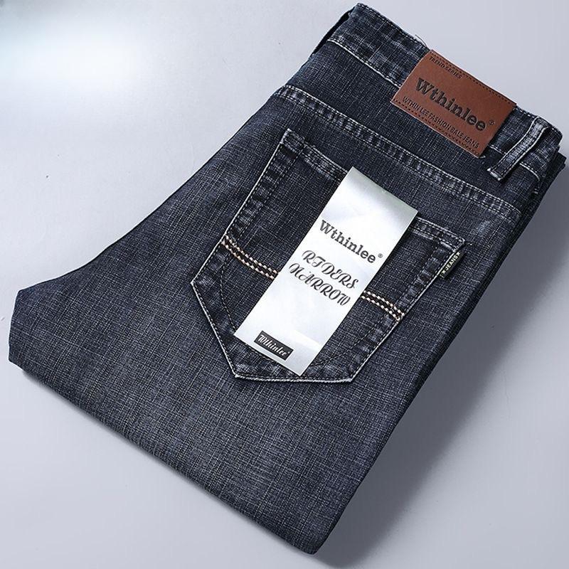 Summer lightweight denim trousers for men Straight-leg relaxed fit stretch business casual trousers