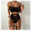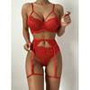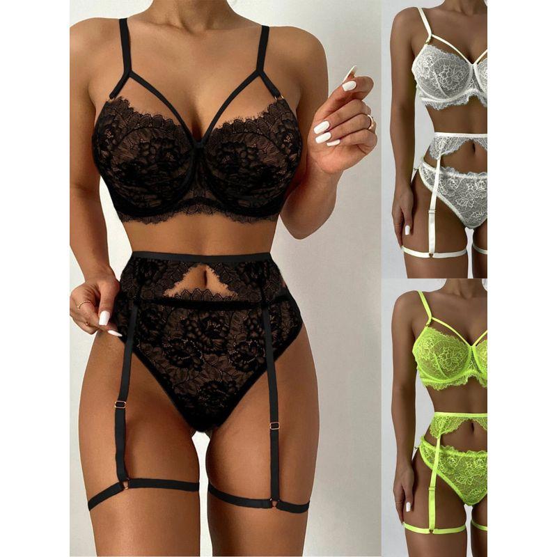 Sexy Lace Lingerie Three-Piece Set Sexy Women's Lace Pure Color Intimates Three-Piece Set