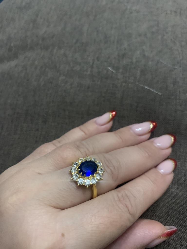 Anillos de compromiso con circonitas de piedra azul ovalada para mujer, anillos de boda de color dorado a la moda con flores para fiestas y aniversarios