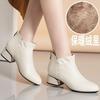 New short boots women's spring, autumn and winter white soft leather single boots thick heel leather shoes velvet soft sole mother shoes cotton shoes