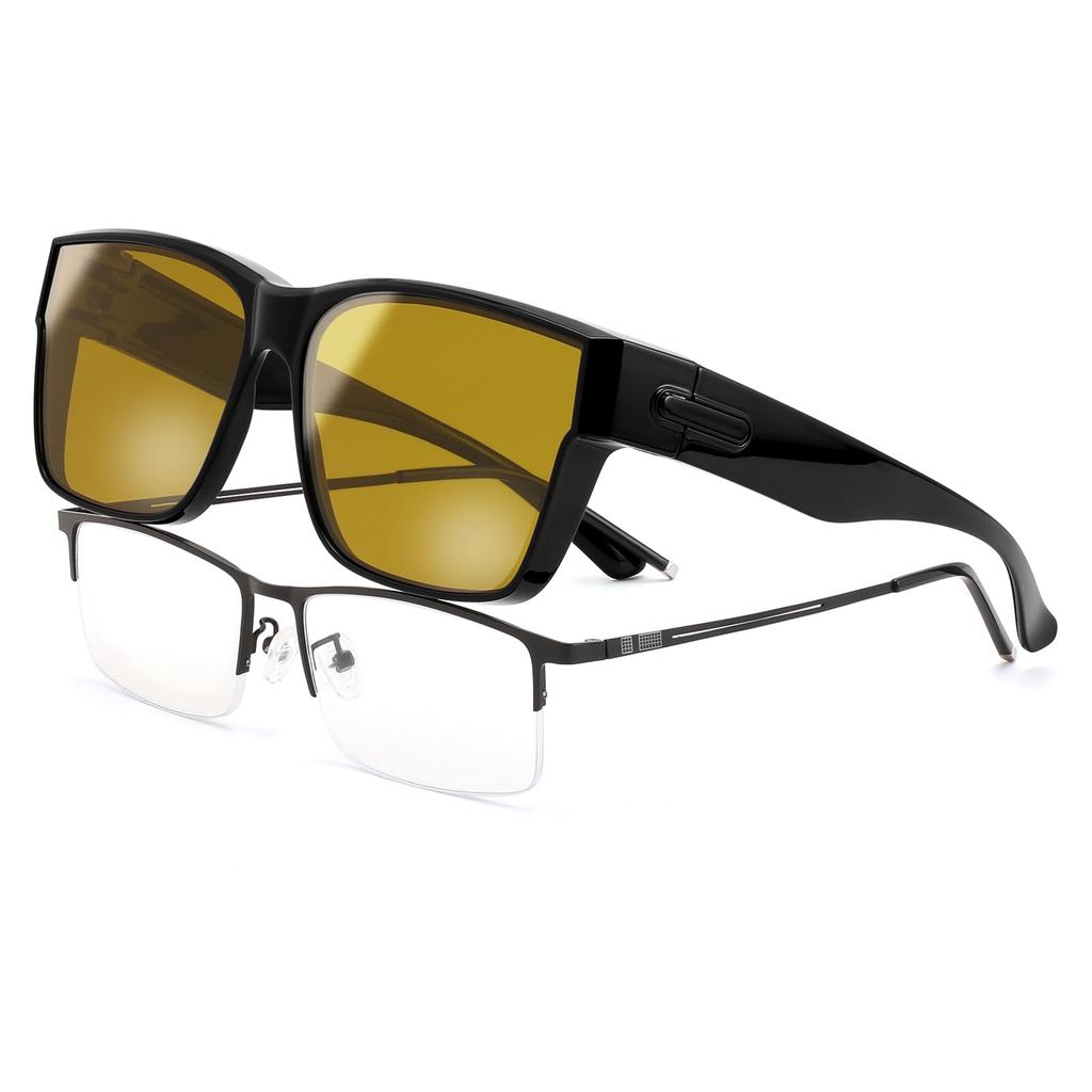 [Gospel for Eyeglass Wearers & Fits Oversized Eyewear] Oversized sunglasses are functional sunglasses that can be worn over glasses. They can be worn directly over or without glasses. The oversized polarized lenses allow for a wide range of eyeglass sizes, making them suitable for people with nearsightedness, farsightedness, and presbyopia. These stylish sunglasses, combined with glasses (glasses and sunglasses), don't feel out of place and will even elevate the wearer's sense of style.