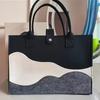 Chic Striped Felt Tote Bag For Women - Versatile Commuter Handbag With Secure Locking Closure, Fixed Shoulder Strap